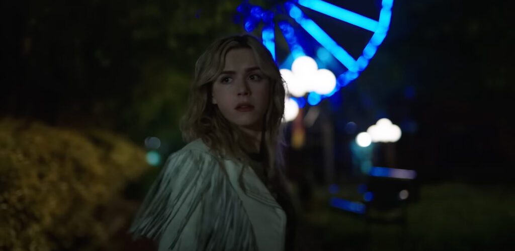 That teenage girl is Jamie Hughes (Kiernan Shipka, Wildflower), and before she knows it, life will spiral out of control, past and present colliding in tragic, and very messy, ways. The first horror to strike is an attack on her own mother, Pam (Julie Bowen, The Fallout). According to local podcaster Chris Dubasage (Jonathan Potts, Anon), this means that the murderer must be back. What to do?