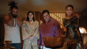 That’s the initial setup, with a snowstorm on the way to keep everyone from leaving. With the occasional addition of Kevin Pollak (Here’s Yianni!), as Gary, the rental property’s owner, it’s just four actors in a single location, running the full gamut of their emotions. The dialogue and action range from sad and contemplative to giddy and wild. Throw in some magic moonshine, too, for additional frantic energy.