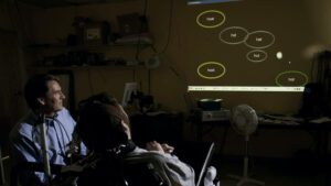 All the while, an almost overload of information is contained in the film, including Kennedy’s upbringing and background, as well as existential discussions of the repercussions of tampering with the brain. In many ways, Father of the Cyborgs comes across as a narrative work, following a relatable and genuine character as he experiences success and failure and is driven and motivated by both to experiment on himself. Effortlessly, the film creates a looming sense of drama as we both root for Kennedy to succeed and dread what may happen to him if he fails horribly whilst risking his own brain.