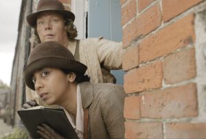 At this time and in this place, there is no room for stepping out of line, and the Swans’ accusations land Rose in prison, even though the evidence against her is purely circumstantial. This doesn’t sit so well with “Woman Police Officer Moss” (Anjana Vasan, Mogul Mowgli)—a title that she, first name Gladys, is forced to use at the behest of her male superiors—and so she sets out to investigate the crime (if crime it actually is, since it only involves the delivery of letters, as awful as they may be). Initially alone in her pursuit, Gladys is soon able to gather allies among the other area women, equally fed up with the state of things. This is the era of suffragettes, after all.