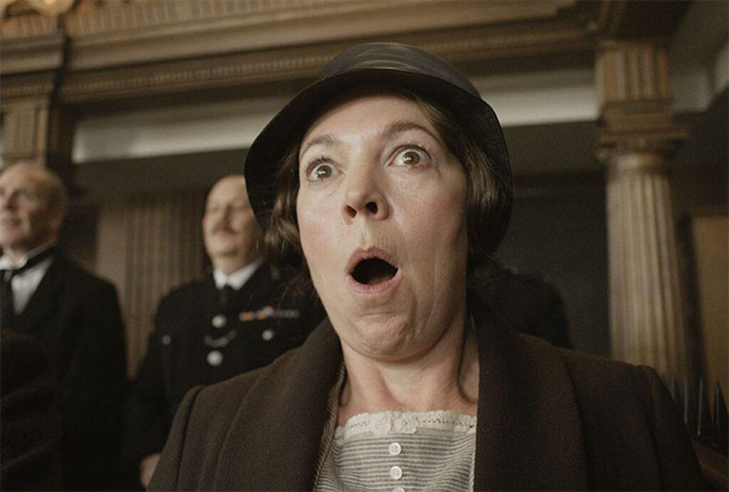 At this time and in this place, there is no room for stepping out of line, and the Swans’ accusations land Rose in prison, even though the evidence against her is purely circumstantial. This doesn’t sit so well with “Woman Police Officer Moss” (Anjana Vasan, Mogul Mowgli)—a title that she, first name Gladys, is forced to use at the behest of her male superiors—and so she sets out to investigate the crime (if crime it actually is, since it only involves the delivery of letters, as awful as they may be). Initially alone in her pursuit, Gladys is soon able to gather allies among the other area women, equally fed up with the state of things. This is the era of suffragettes, after all.