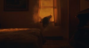 JB: You know, necessity is the mother of invention, and we always knew that the film was going to be a small, intimate movie, and to me, I wanted to do things that… at the same time, if I had $20 million, I wouldn’t have made that script. The script was conceived to be small and intimate, and when you can’t show everything, you have to start picking and choosing what you’re suggesting. We also did things that were… I don’t know, “stupid?” For example, there’s very few dolly shots. When you watch horror movies today, there’s a lot of Steadicam and dolly. That’s something that I guess comes from Stanley Kubrick and The Shining, where he really uses the Steadicam. We never used that, we had a different camera accessory, and in fact I think there’s only one dolly shot in the whole film. So it was kind of removing the tropes of standard horror cinema, and even our conversations with our composer.